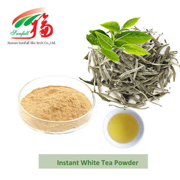 Instant Witte Thee Poeder, 100% oplosbaar in water, met gebruik van de meest verse en malse witte thee als grondstof, waarvan minimaal 30% strikt gegarandeerd pure Silver Tip is, extractie bij extreem lage temperatuur en Nano-membraanfiltratie, met geelgroene kleur en een puur elegant aroma. Hoog gehalte aan groene thee L-theanine, lage verhouding Polyphenolen/Aminozuur, versterkt de menselijke immuniteit, is het meest geschikt voor het ontwikkelen van een typische nieuwe levensontspannende en gezondheidsbevorderende drank.